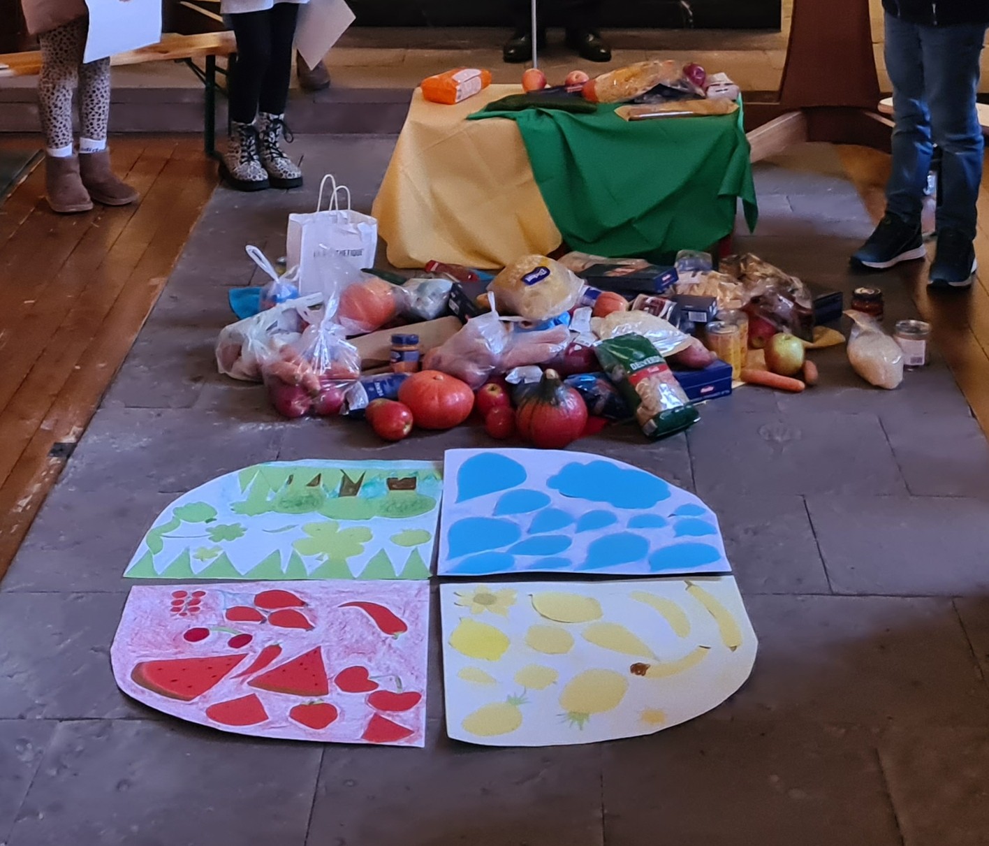 Mit Liedern, Texten und den von den Kindern mitgebrachten Gaben haben wir mit allen Klassen am 25.September 2025 einen Erntedankgottesdienst in der Kirche gefeiert. Die 4. Klassen haben den Gottesdienst mit eigenen Beiträgen und gemalten Bildern gestaltet. Alle Kinder waren mit viel Freude dabei.